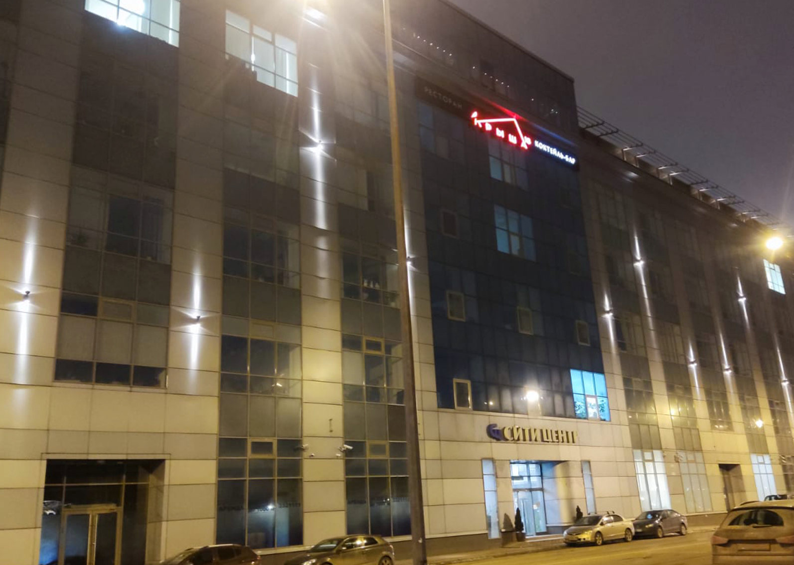 Основываясь на пожеланиях заказчика, для освещения фасада бизнес центра были подобраны узколучевые прожекторы Laser 1D 10w 3000K (L-095001), Quadro LSFT-270-5D 3200К 5° (L-027005) и ALT-RAY-ZOOM-R52-8W Warm3000 (028076).