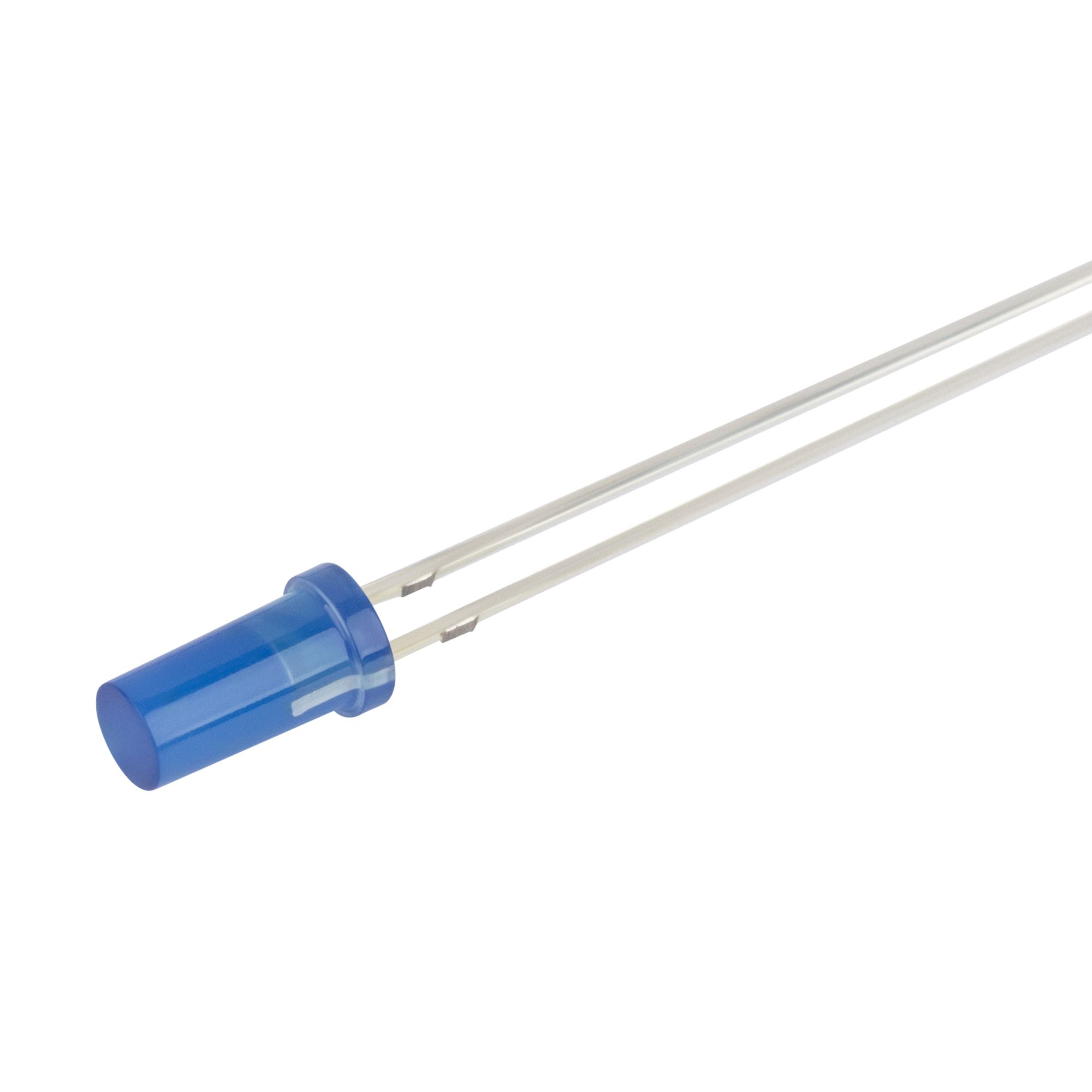 Поставка под заказ от 5000 шт. Выводной цилиндрический светодиод, d=3 мм, диффузная синяя линза. Цвет свечения синий (470 нм). Угол излучения 100°. Сила света Iv=200-450 мкд при If=20 мА. VF=2.9-3.3 В. Рекомендуемый постоянный рабочий ток <16-17 мА.