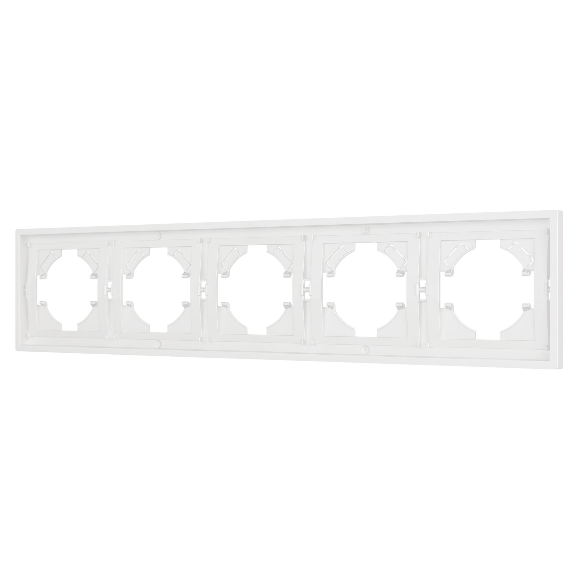 Рамка пластиковая на 5 постов, под встраиваемый механизм. Цвет - белый, с Soft-Touch покрытием. Среднего уровня герметичности IP20. Ориентация монтажа горизонтальная.