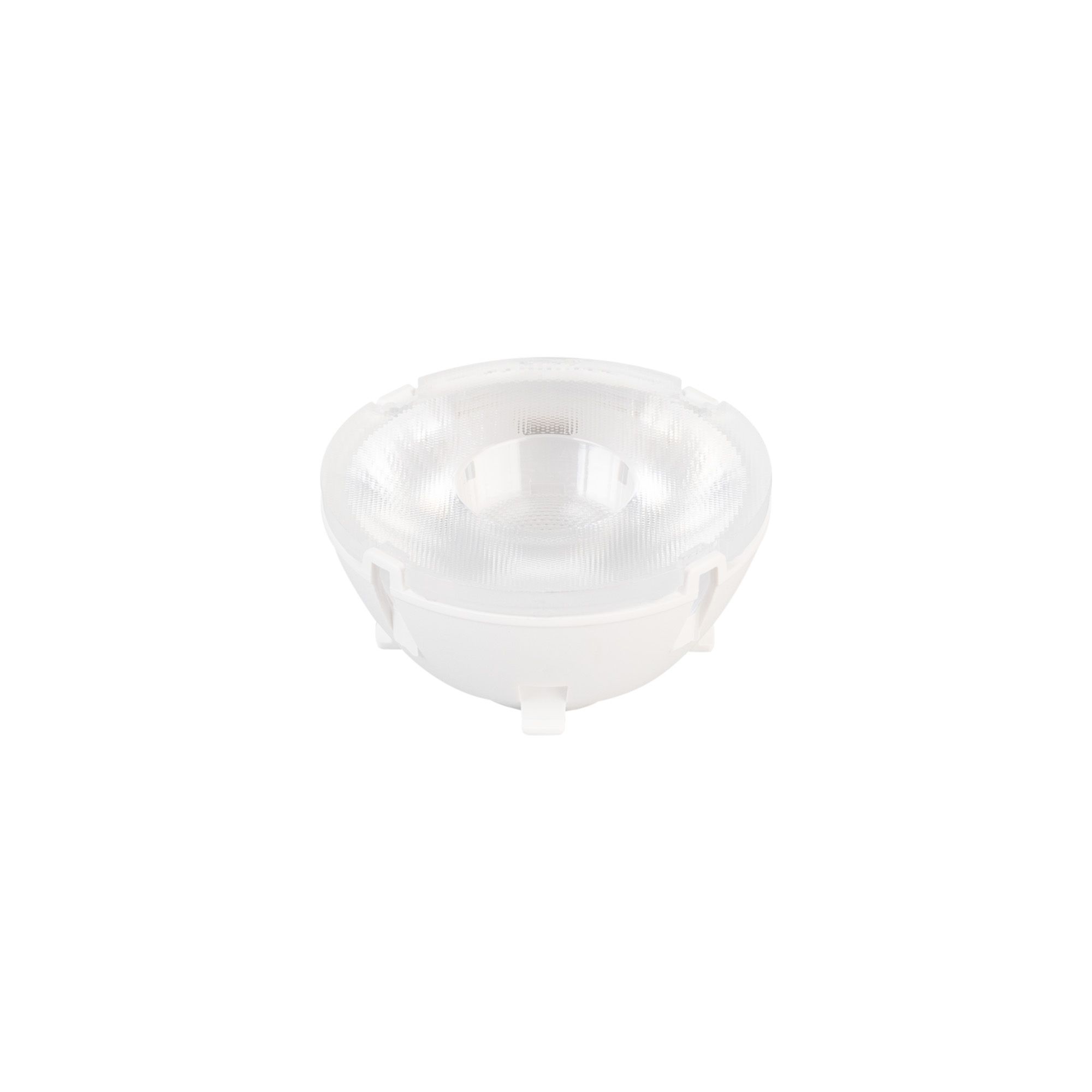 Одиночная линза c холдером белого цвета для светодиодов COB: 1414. Угол обзора: вертикальный 38°, прозрачная. Материал PC. Диаметр 43 мм, высота 18.8 мм.