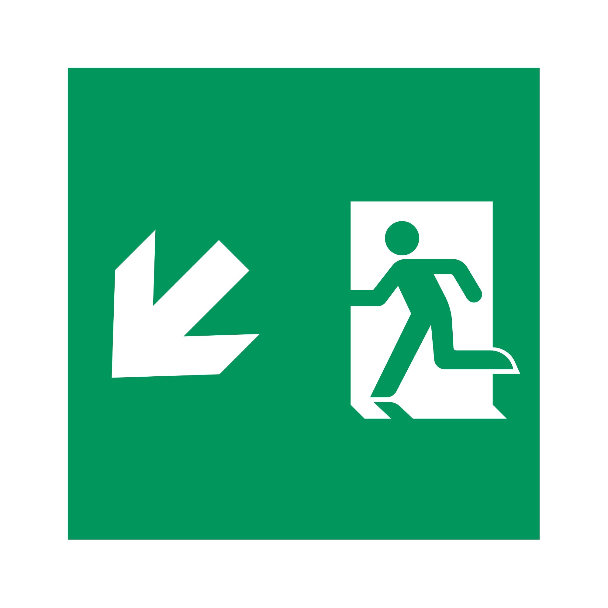 Пиктограмма "человек, стрелка вниз-влево" для аварийных панелей серии EMG-MARK. Выполнена из пластика, вставляется в LGP панель аварийного указателя.