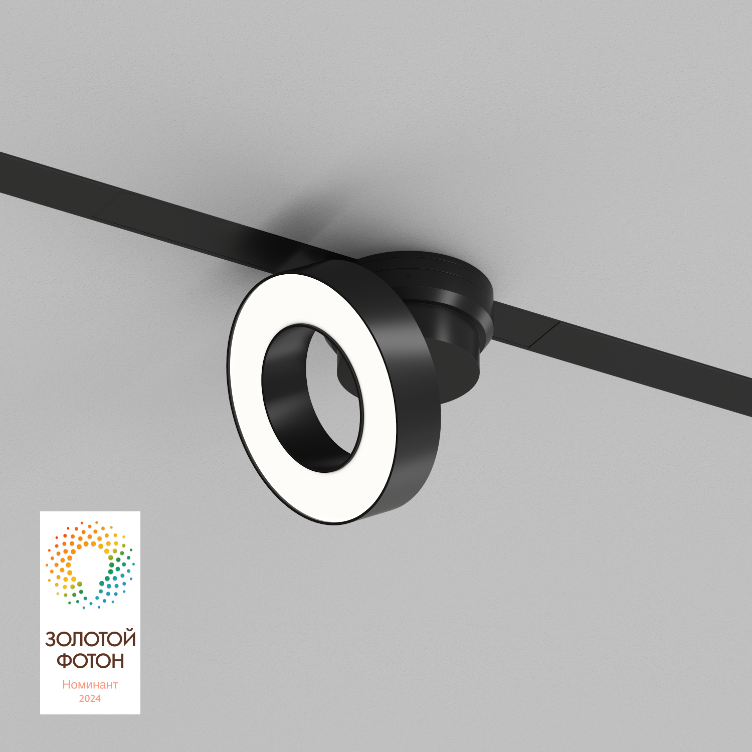 \"Умный трековый светильник, предназначенный для создания общего освещения. Имеет форму поворотного кольца. Свет можно направить вертикально вниз, параллельно плоскости потолка или наклонить под нужным углом. Благодаря матовому рассеивателю обладает широким углом излучения света, что обеспечивает высокий уровень зрительного комфорта и исключает слепящий эффект. Дистанционное управление при помощи приложения, панели, пульта и голосового помощника. Изменяемая яркость и цветовая температура 3000-6000K. Возможность создания световых сценариев. Светильники оснащены светодиодами OSRAM и обладают высоким индексом цветопередачи. Удобный и надежный монтаж в трек DENKIRS SMART с помощью механических защелок. \n\" Срок гарантии 3 года.