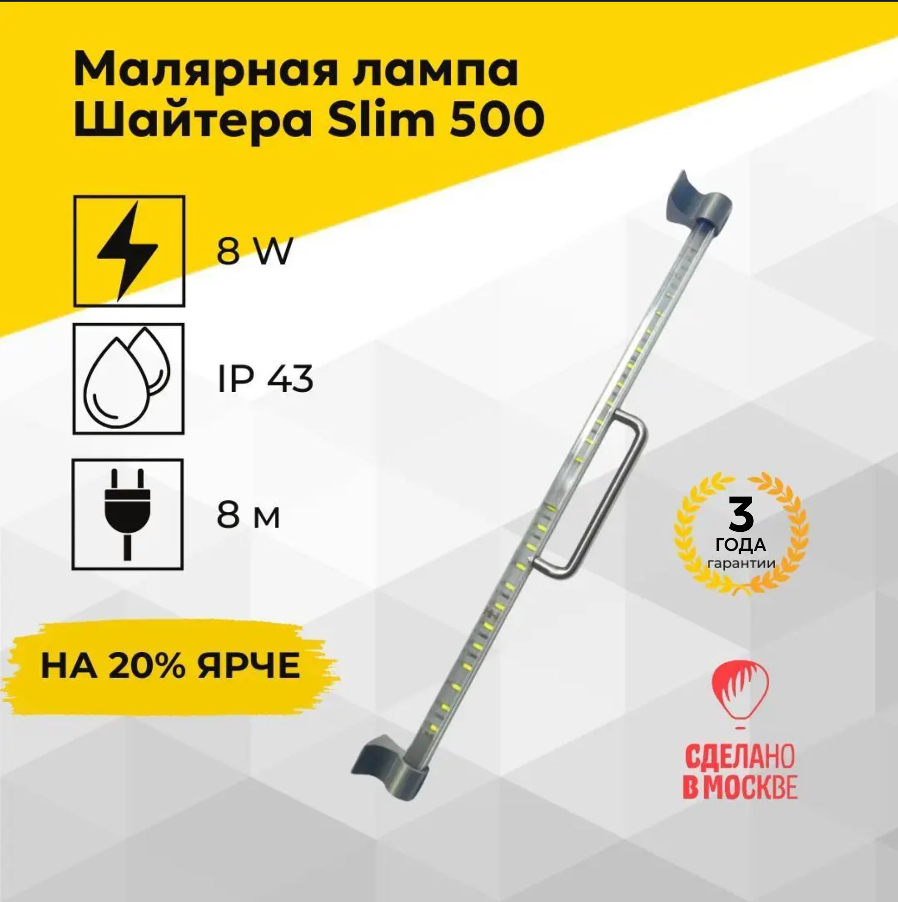 Проявочный свет маляра, лампа Шайтера для контроля качества отделочных работ. Проявочная лампа со специальным углом свечения оснащена удобной ручкой-держателем и позволяет контролировать качество штукатурных и малярных работ непосредственно в процессе. Легковесная конструкция, длинный кабель питания и профессиональная комплектация светильника помогут выявить и исправить недочеты отделки даже в труднодоступных местах.