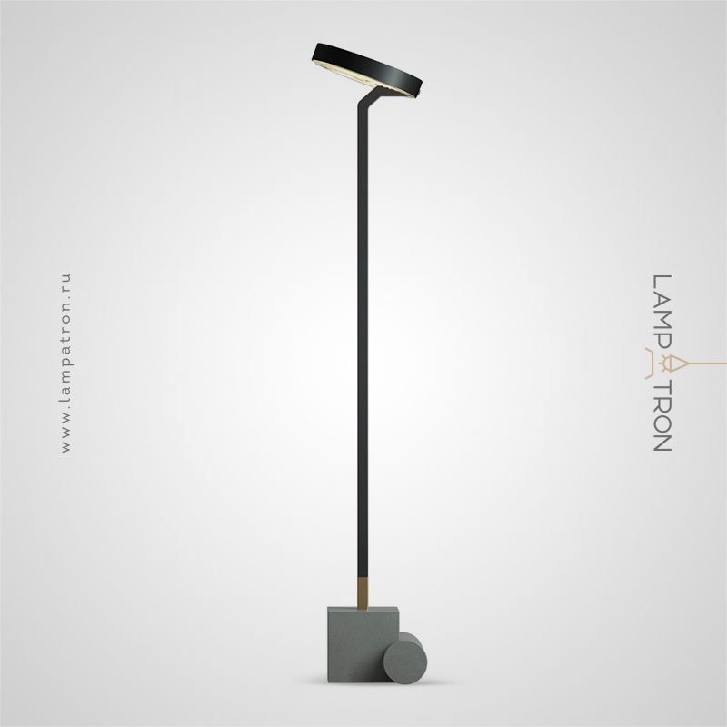 Светодиодный торшер с поворотным рельефным рассеивателем на вертикальной стойке с геометрическим основанием из бетона