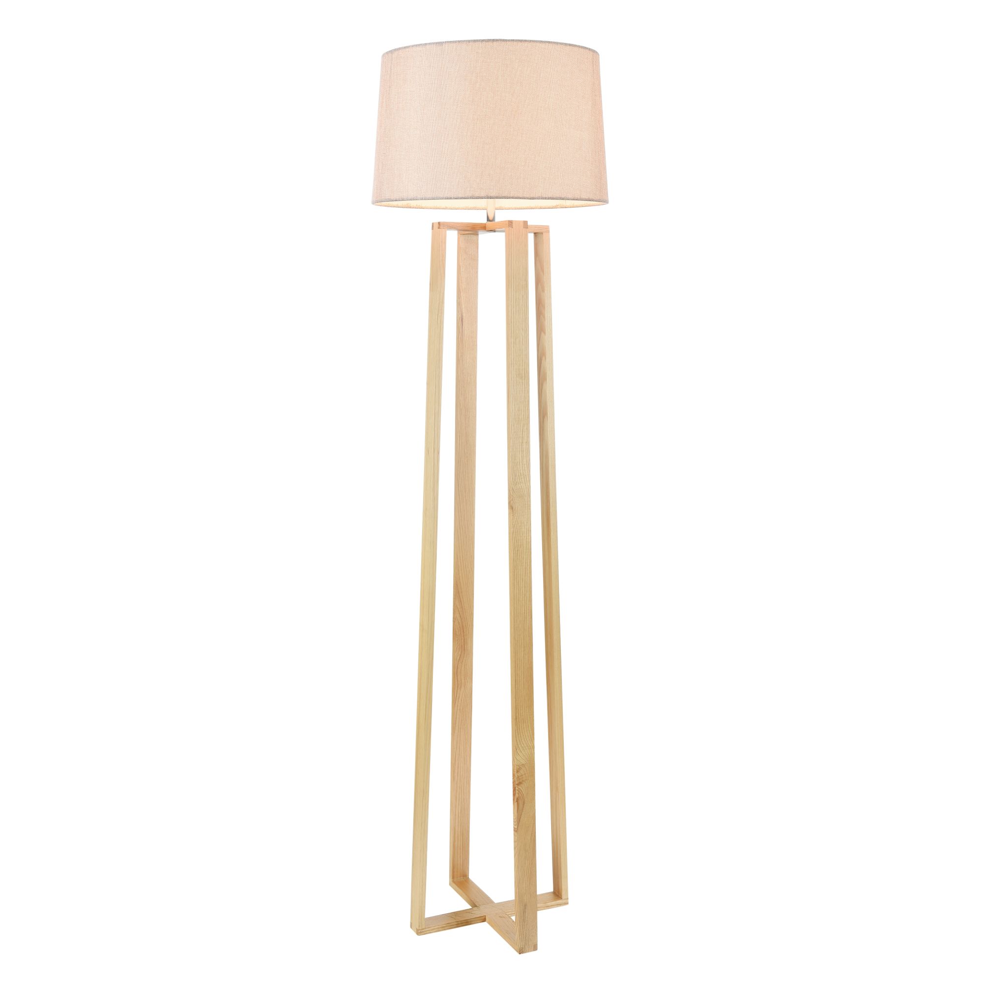Торшер выполнен в современном стиле в неброской светлой цветовой гамме. Арматура изделия сделана из металла и древесины, а абажур - из ткани. Визуальная простота дизайна позволяет вписать торшер Nubi даже в готовый современный интерьер.