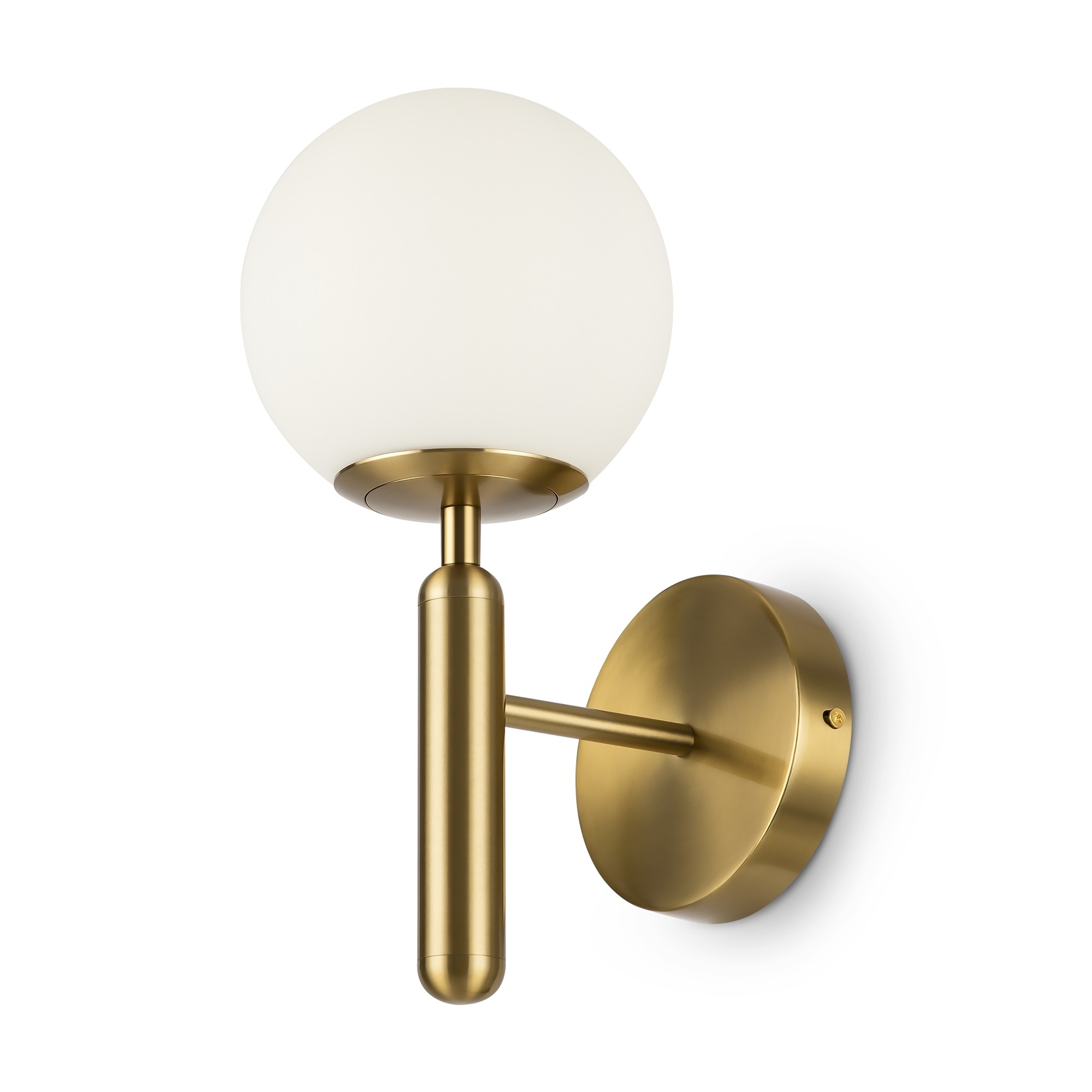 Металлическая арматура оттенка латуни. Плафоны-сферы в двух вариантах: матовое белое стекло и прозрачное с рельефной фактурой. Широкий ассортимент для зональной подсветки. В качестве источника света используется лампа с цоколем Е14.