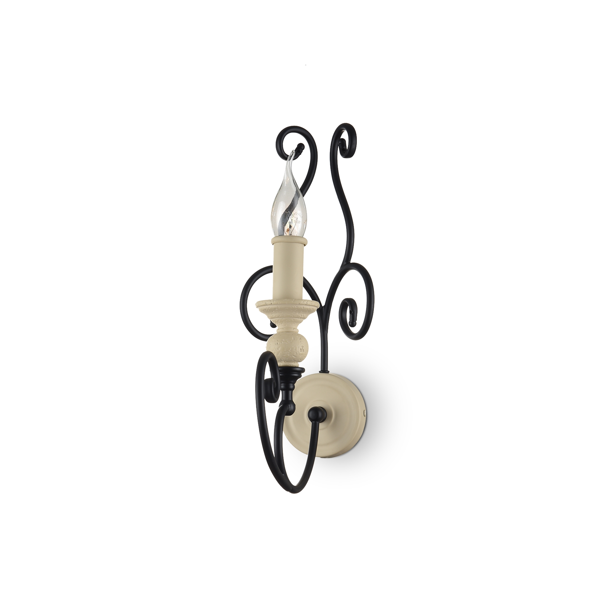 Арматура – металл, оттенки – белый, черный. Декор – полирезин, оттенки – серый, бежевый. Источники света в форме свечей. Крепление 2 в 1 – на крюк или планку.