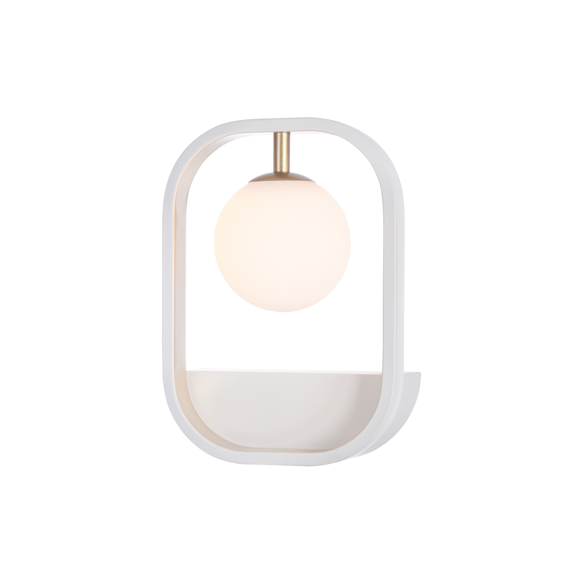 Металлическая арматура в комбинации двух оттенков: белый и серебро, белый и золото. Плафоны-сферы из выдувного стекла, цвет – белый. Регулируемая высота.