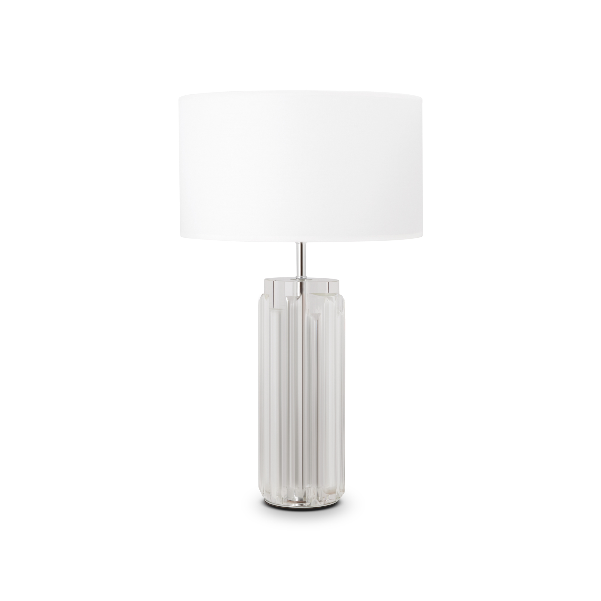 Металлическое основание - дополнено скульптурным литым стеклом в трех оттенках: прозрачном, дымчатом и пудрово-розовом. Хлопковый абажур белого цвета. Цоколь Е27.