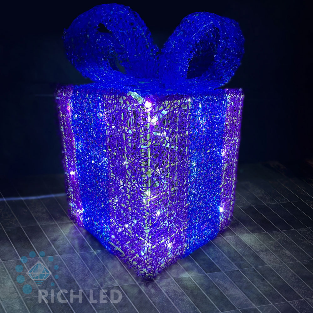 Подарок с бантом 30 см, фиолетовый синий, белый RL-3D-GB30-VB/W