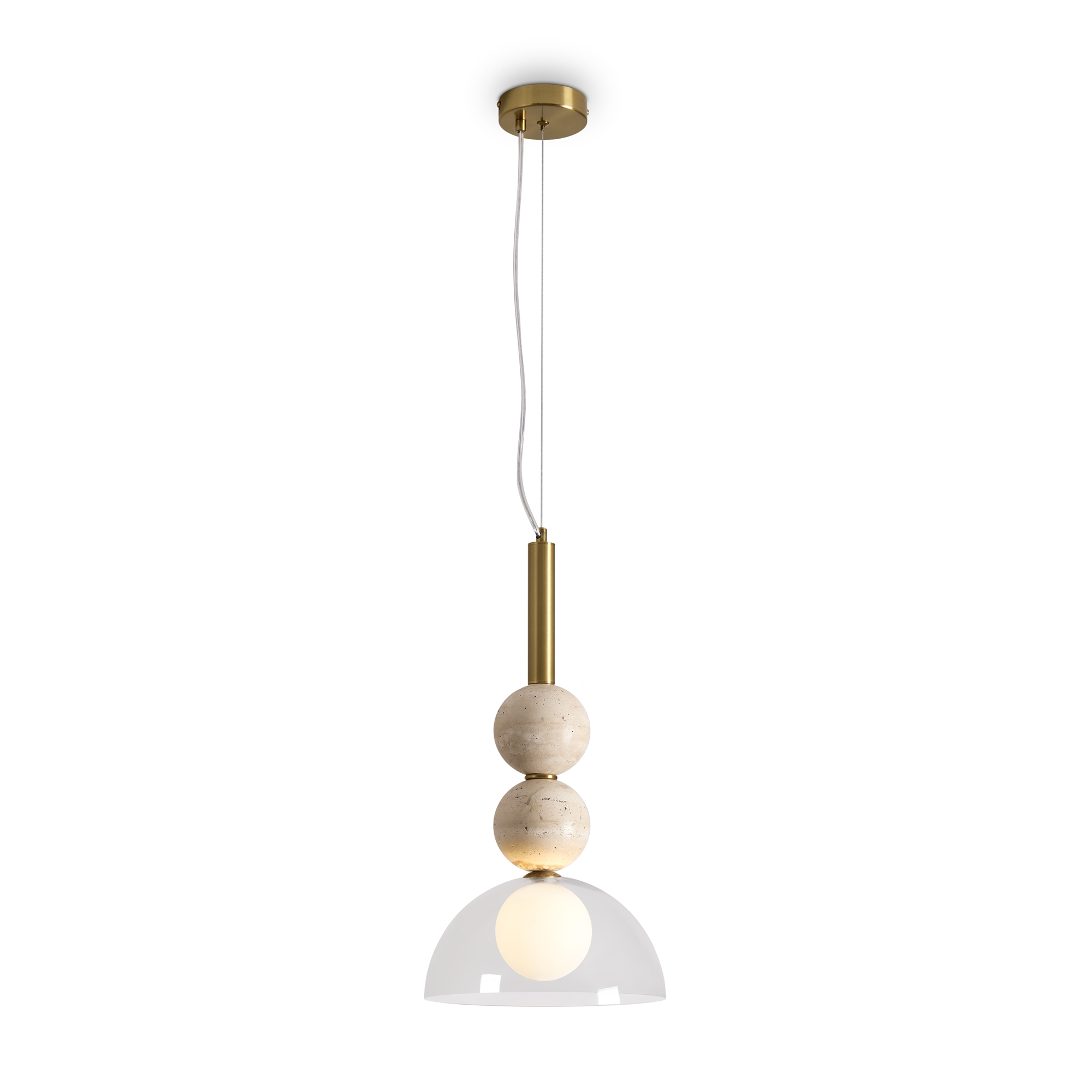 Серия Sunspot использует камень травертин как основной декоративный элемент. Настенные бра в двух вариантах: с матовым белым стеклянным плафоном и со «скользящим» теплым светом. Отличительная черта бра: увеличенный размер плафона и сенсорное включение/выключение без диммирования. Подвесные светильники имеют прозрачные стеклянные плафоны с декоративными шариками из камня травертин. Sunspot включают три модели подвесов разных размеров и форм стеклянной окантовки на плафон. Арматура — металл латунного и черного цвета Источники света LED 3000K и цоколь G9. Настольная лампа с touch переключателем . Серия создает комплексное зональное и акцентное освещение, подходящее для создания уютной атмосферы.