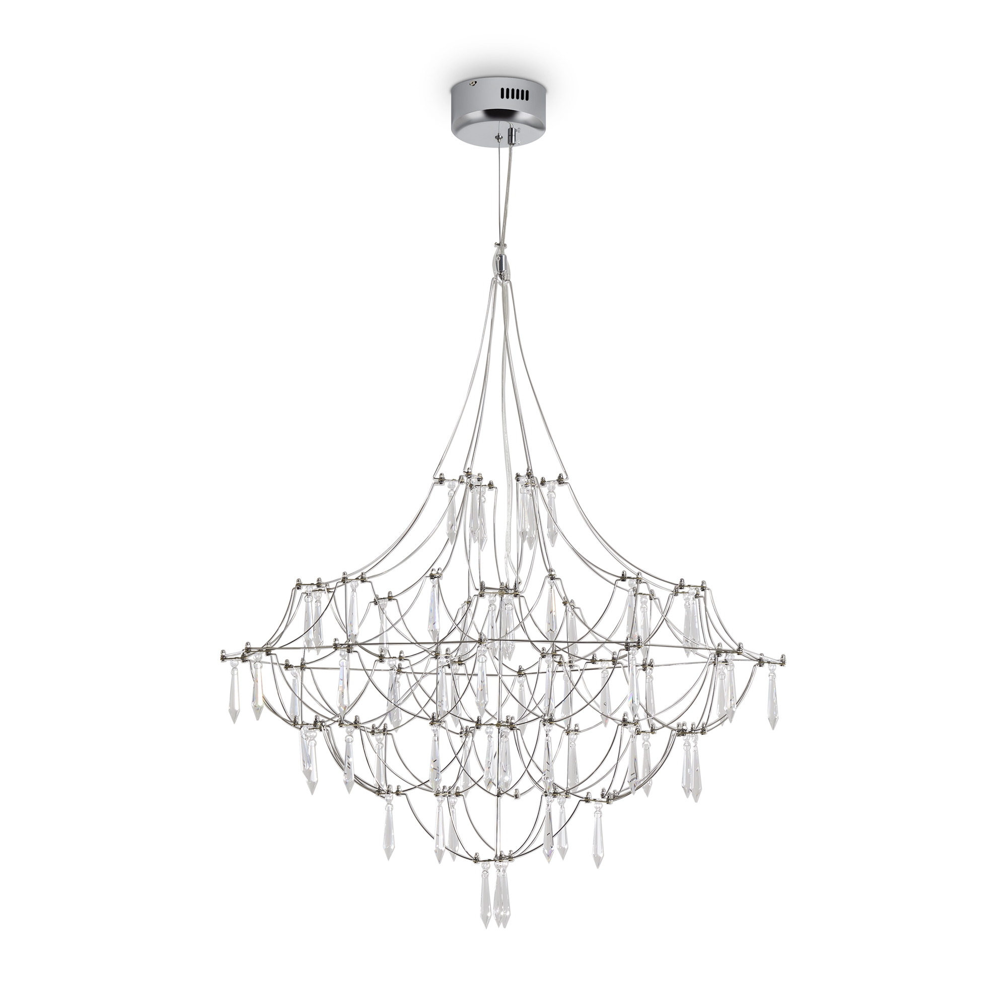 Арматура - хромированная нержавеющая сталь. В соединениях арматуры Led источник света и декоративные элементы из хрусталя в виде капелек. Цветовая температура 3000К.