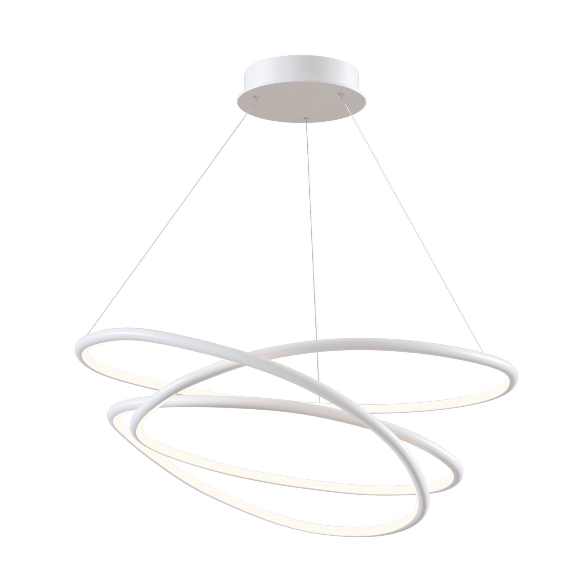 Материал арматуры – алюминий, порошковое окрашивание. Цвета - белый, латунь. . Источ ник света – SMD-светодиоды, скрытые под опаловым диффузором. Два варианта регулируемой цветовой температуры - 2600К-3500К и 3000К-4000K. Высота регулируется тросами.