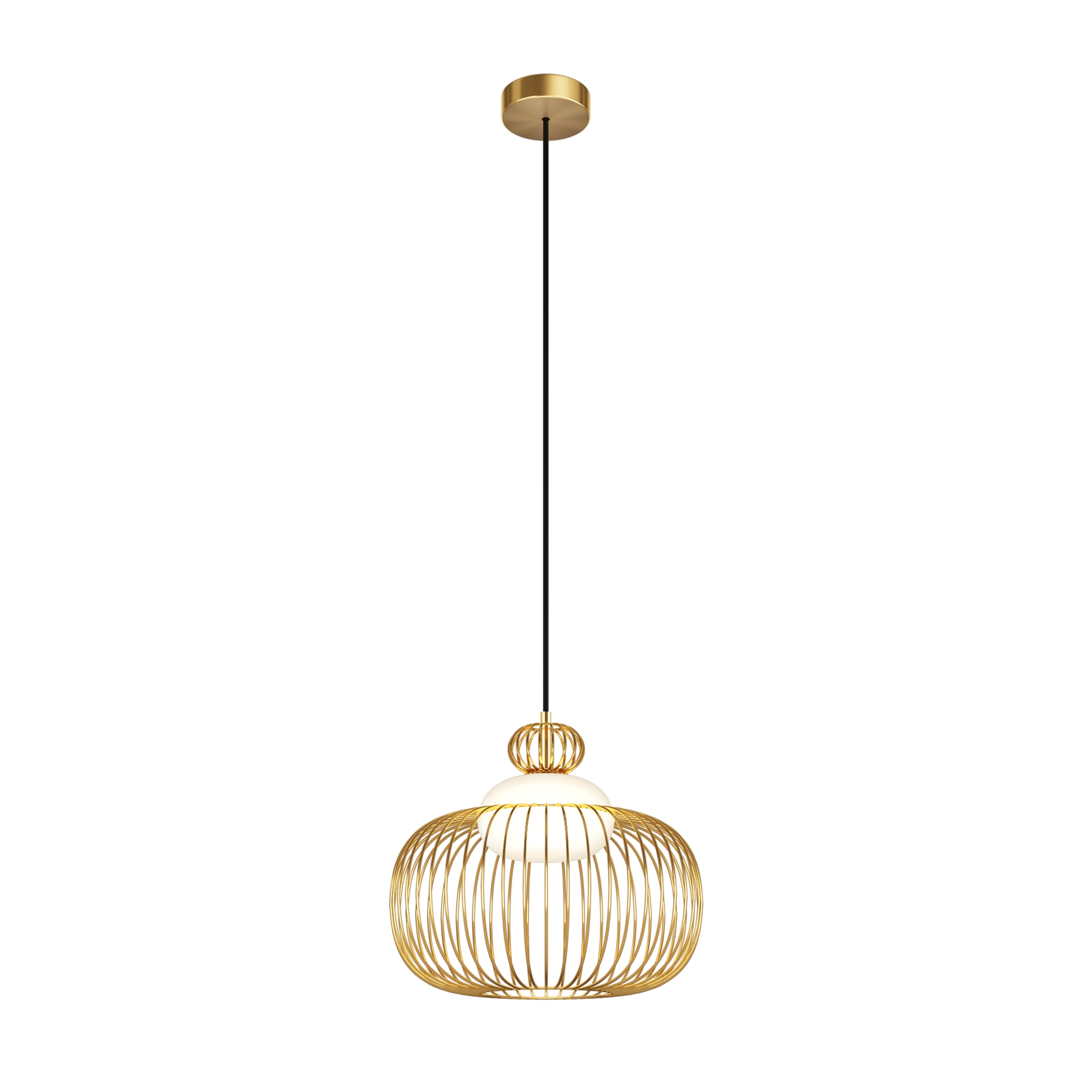 Цвет арматуры — латунь. Материал арматуры — металл. Абажур — каркас из проволоки, стекло. Оригинальный дизайн с эффектом левитации. Стеклянный рассеиватель со специальным выступом для крепления проволочного плафона. Два типа подвесных светильников: компактные со сменными лампами и крупный с LED-модулем для двунаправленного освещения. Провод длиной 3 метра для высоких потолков. Регулируемая высота подвеса. Универсальный дизайн для неоклассики, эклектики и фьюжн.