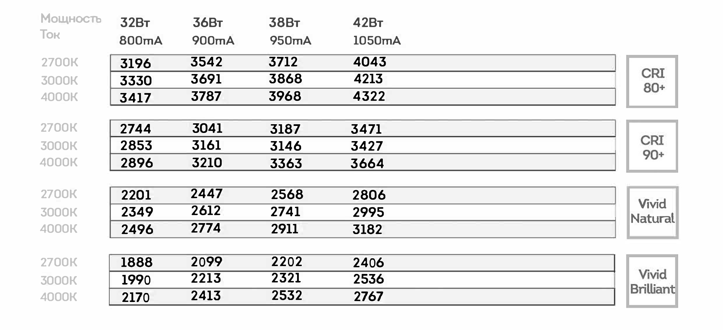 Серия VIVID - укомлектована светодиодами CITIZEN со специальным индексом цветопередачи, разделяется: