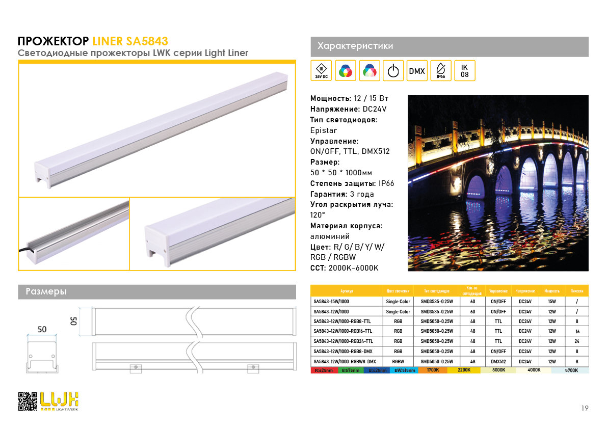 Светильник применяется для статической или управляемой декоративно контурной подсветки сооружений