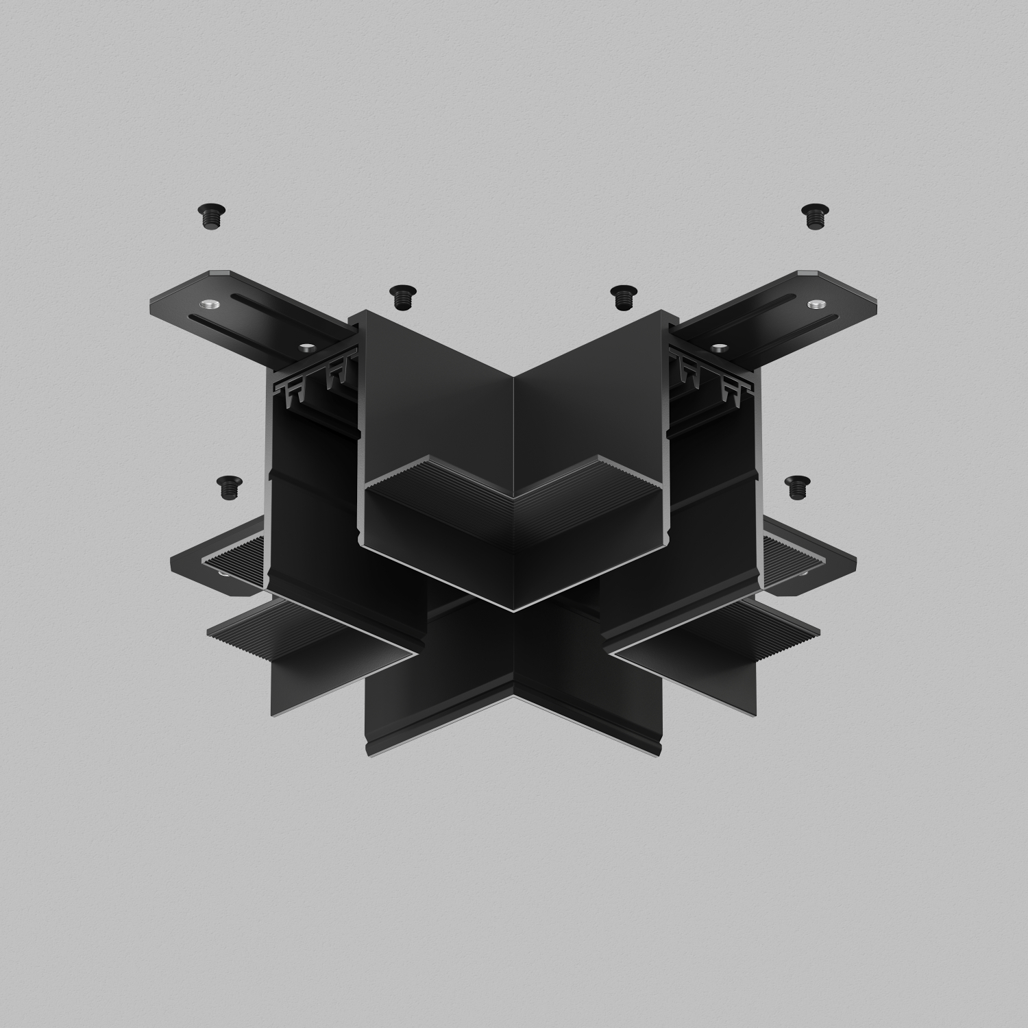 Х-образный механический соединитель трека SMART, для встраиваемого монтажа в гипсокартон. Предназначен для создания Х-образного соединения треков в одной плоскости. Гибкий электрический коннектор арт. TR2116 приобретается отдельно. Четыре металлические соединительные пластины, служащие для крепления треков и соединительного элемента входят в комплект поставки.