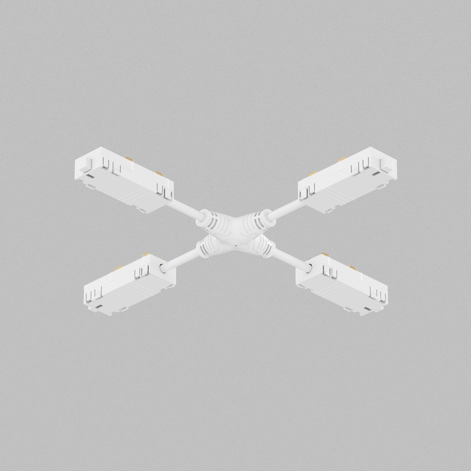 Специализированный трек, предназначенный для встраиваемого монтажа в потолки и стены из гипсокартона. Имеет фланцы-упоры по всей длине, благодаря которым надежно фиксируется в материале потолка либо стены Предназначен для передачи электричества в местах X-образного соединения треков. Используется совместно с механическим соединителем TR2114.Гибкий X-образный, электрический коннектор трека SMART, белый. Позволяет передать питание между четырьмя треками SMART. Используется cовместно с X-образным механическим соединителем TR2114-WH