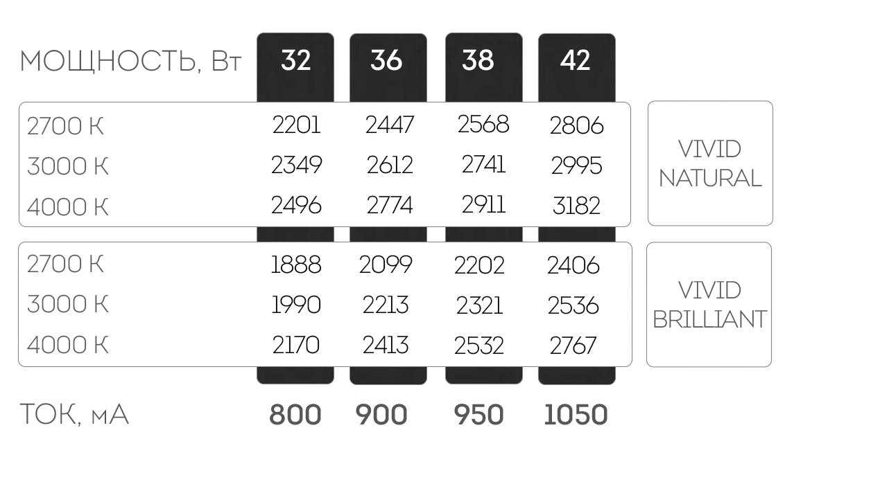 Серия VIVID - укомлектована светодиодами CITIZEN со специальным индексом цветопередачи, разделяется: