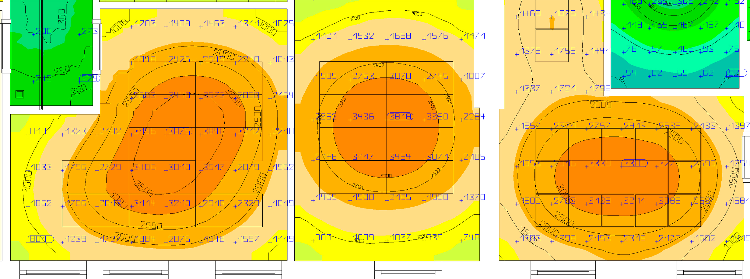 4.После проведения работ по монтажу светильников были проведены контрольные замеры уровня освещённости в кабинетах. Результат замеров подтвердил правильность выбора светильников. Средний показатель освещённости рабочей поверхности оказался 3600 Lux