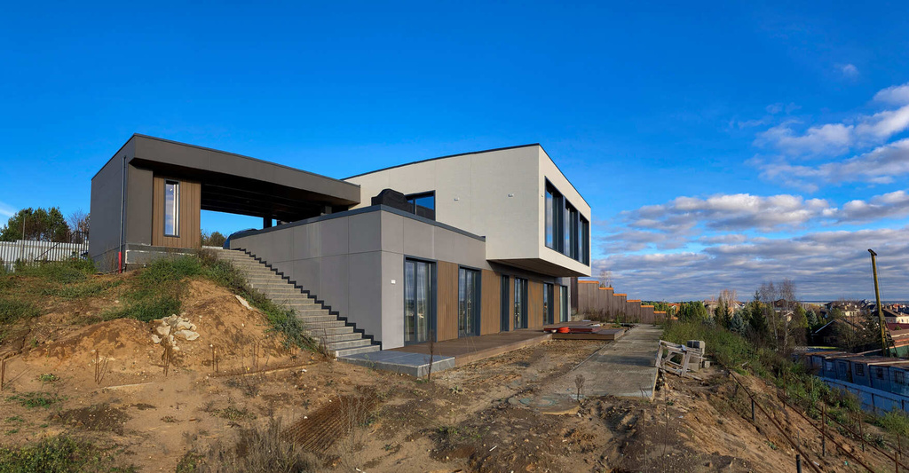 Проект фасадного освещения частного дома. Задача заключалась в переработке существующего решения: мы сократили количество светильников, усилив визуальный эффект и подчеркнув архитектуру здания.