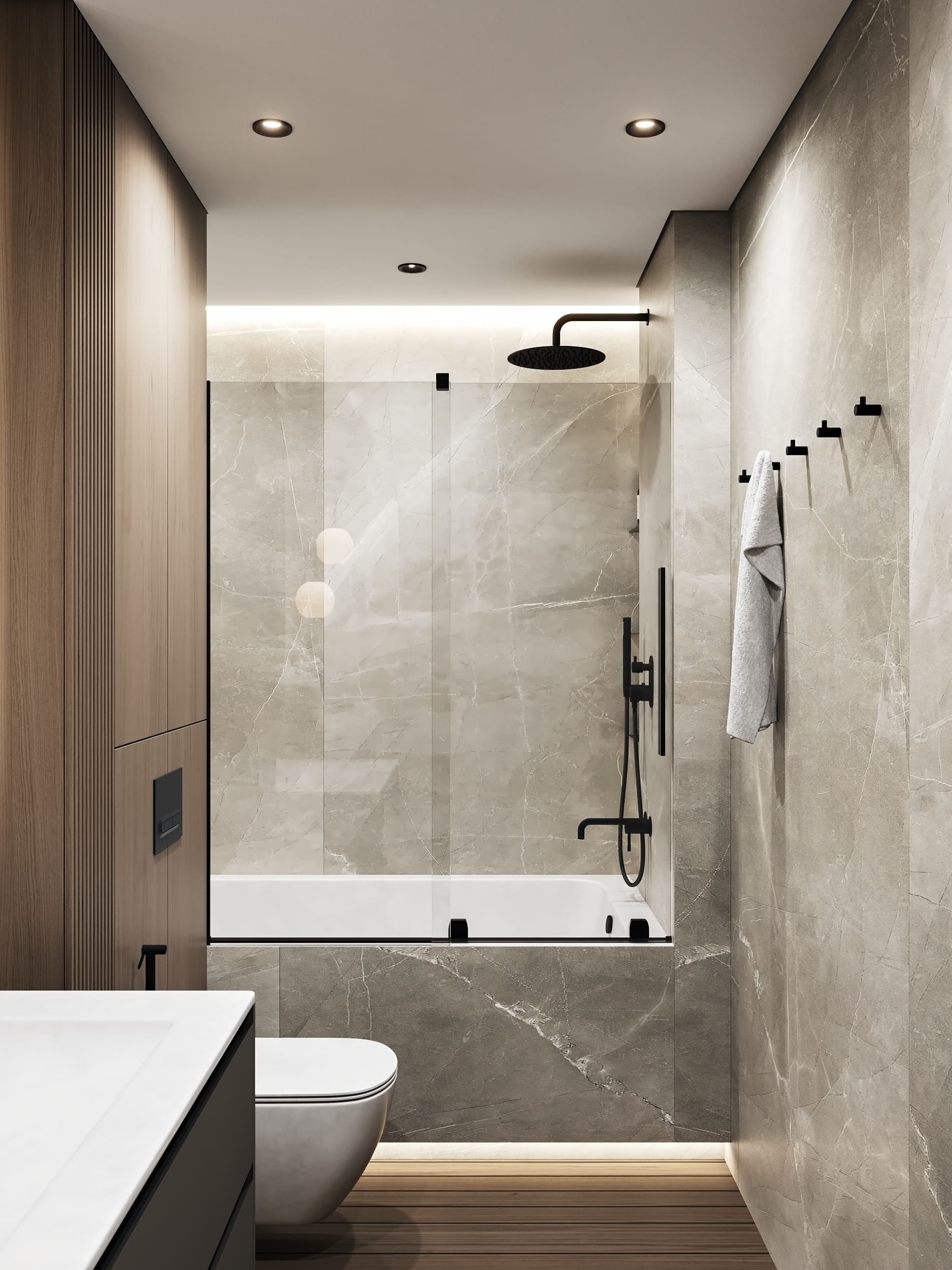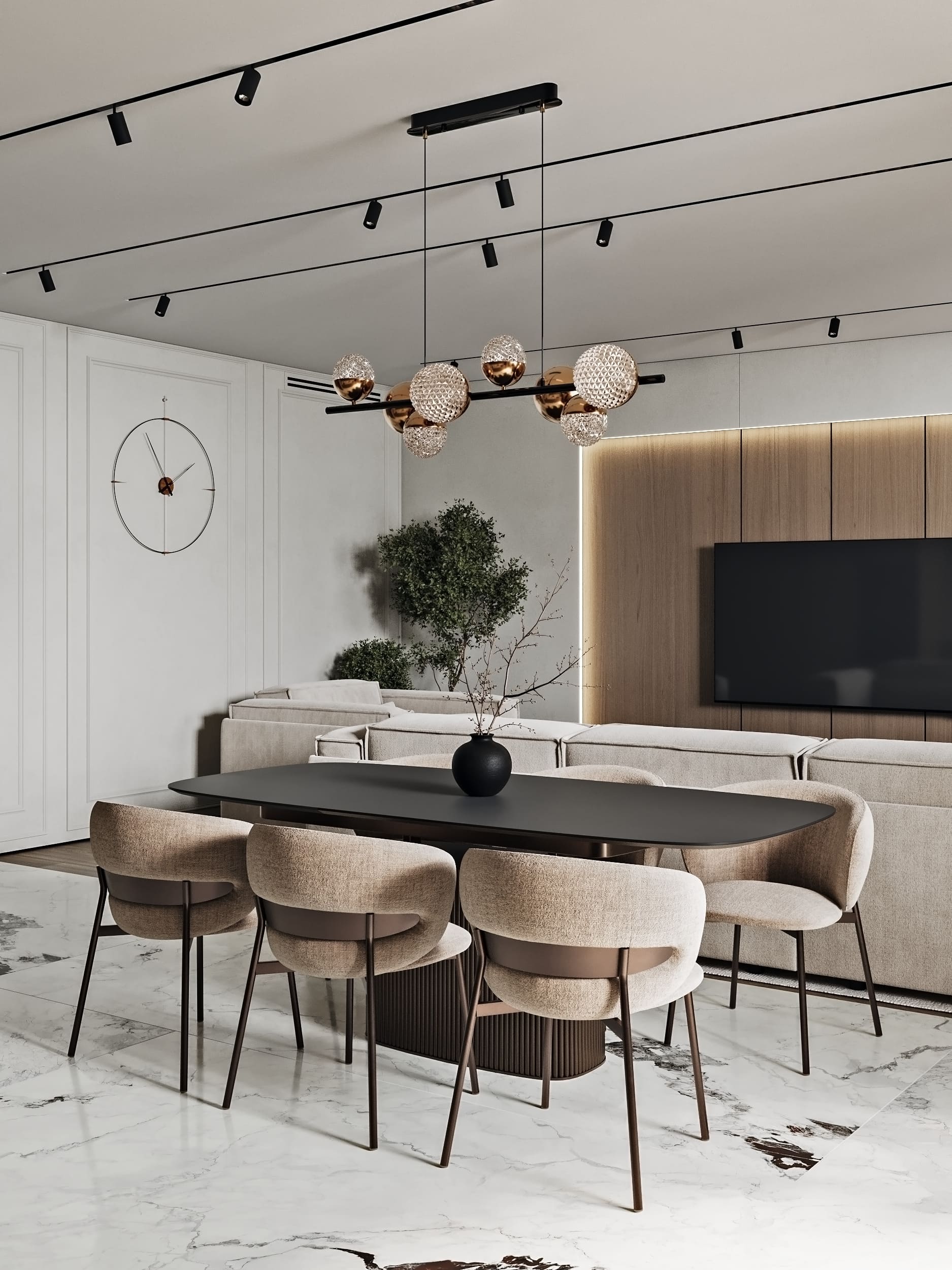Основной задачей стало обновление устаревшего интерьера и приведение пространства к современным требованиям комфорта и функциональности. Концепция основана на современном стиле с элементами минимализма и классики.