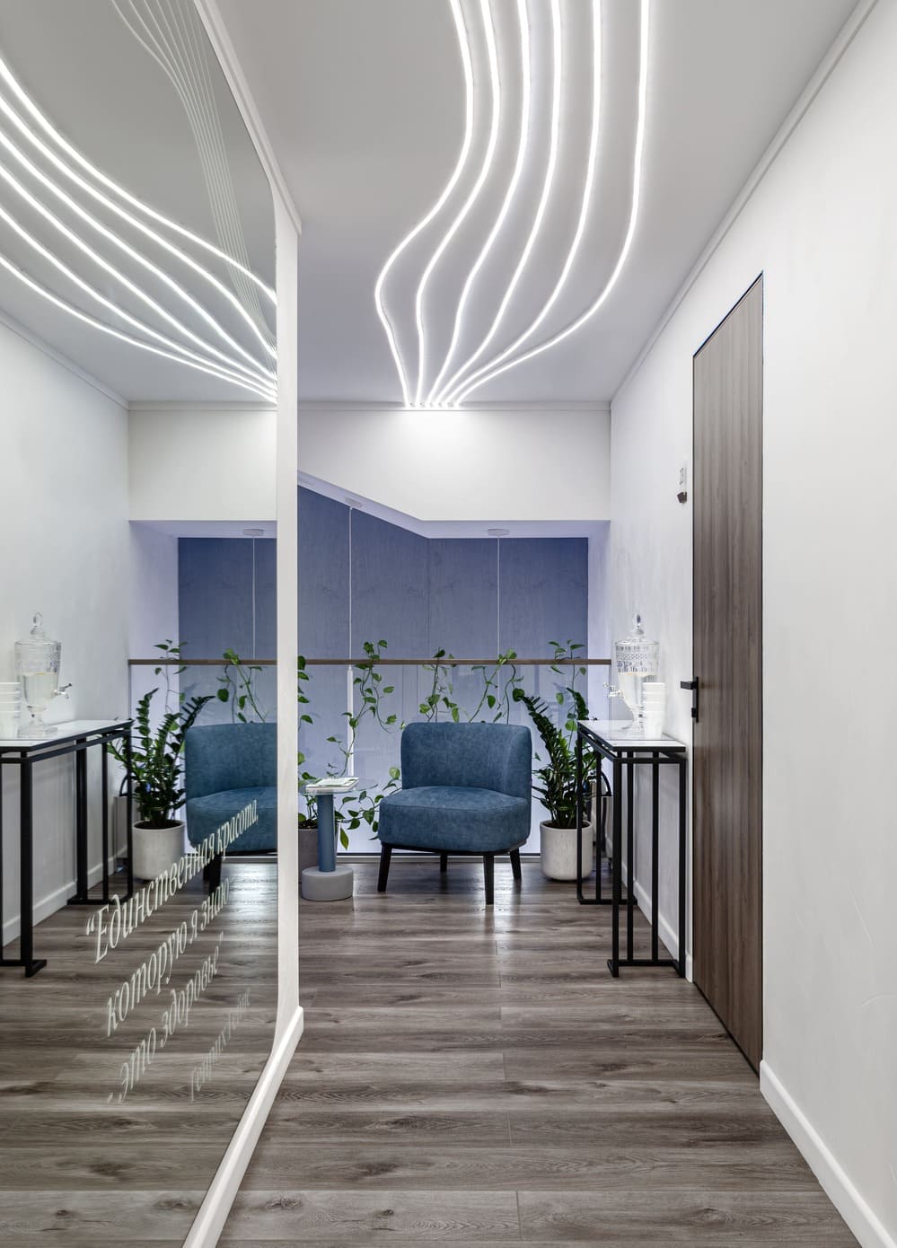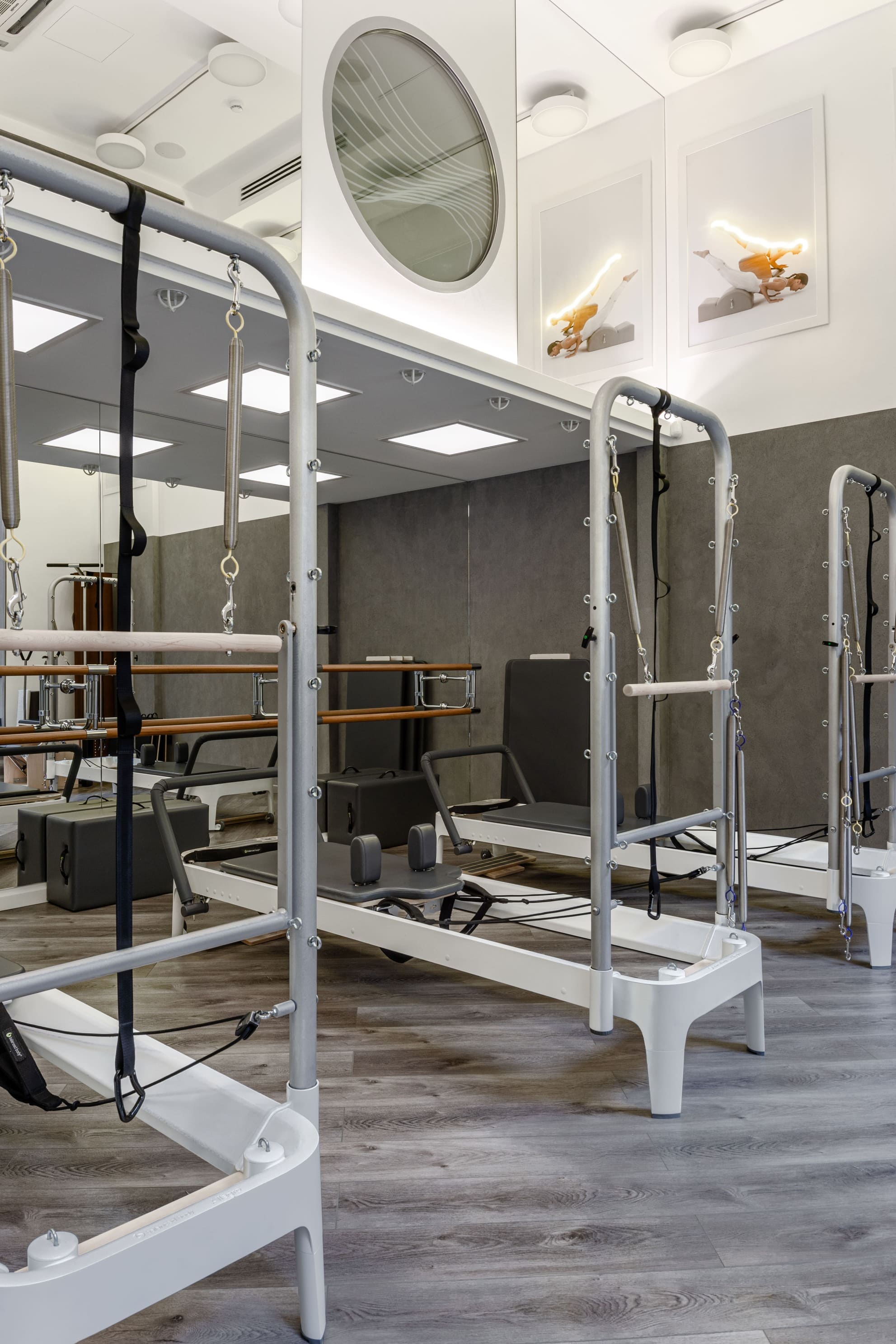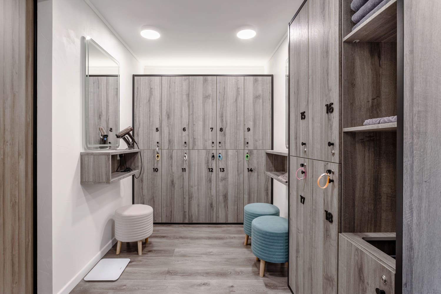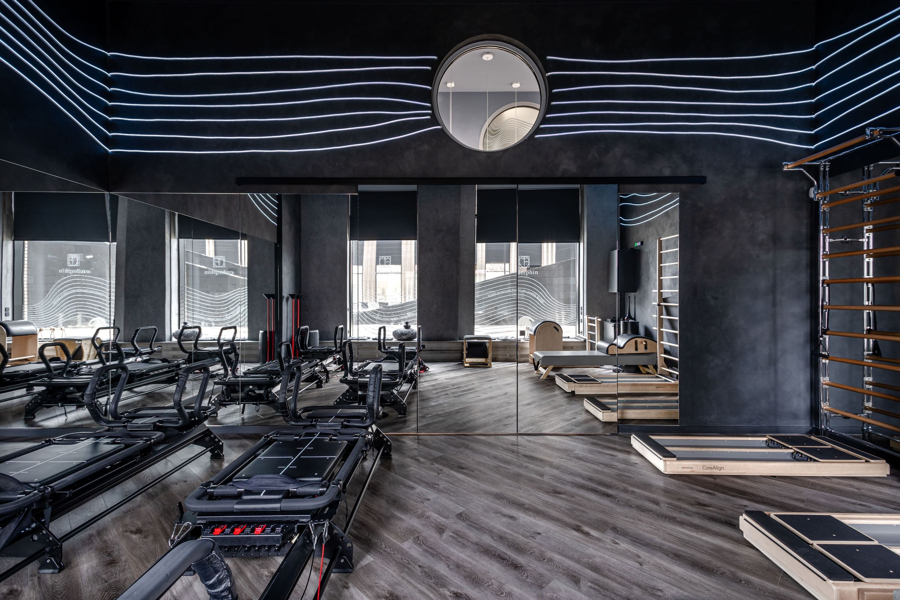 Все световые сценарии рассчитаны под разные форматы занятий и позволяют регулировать яркость и атмосферу пространства. Освещение равномерное, комфортное для глаз и подчёркивает геометрию интерьера, не отвлекая от тренировочного процесса. Проект «Эндорфин» - пример сдержанного, технически выверенного интерьера, где дизайн полностью отвечает задаче удобной и профессиональной работы студии.