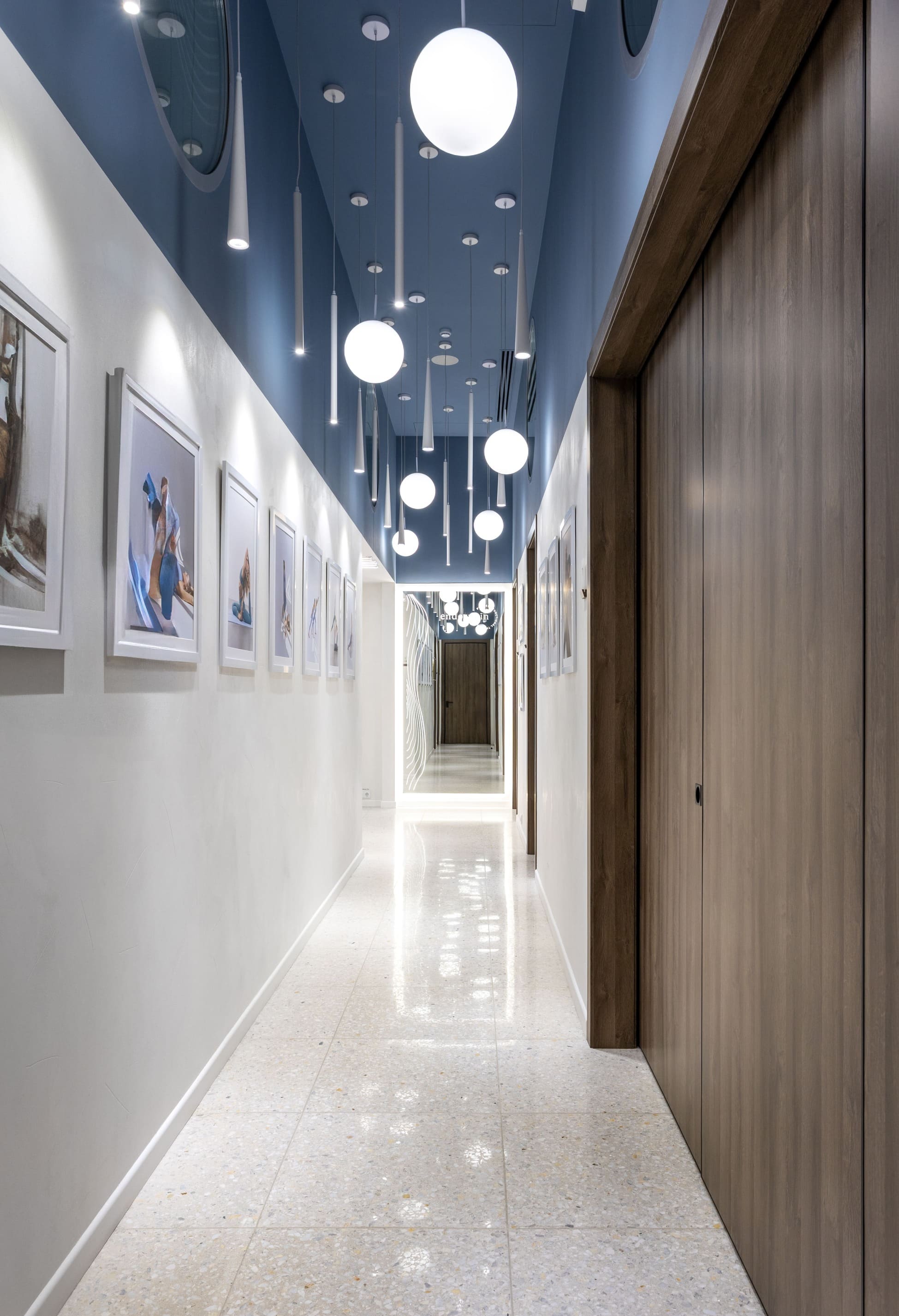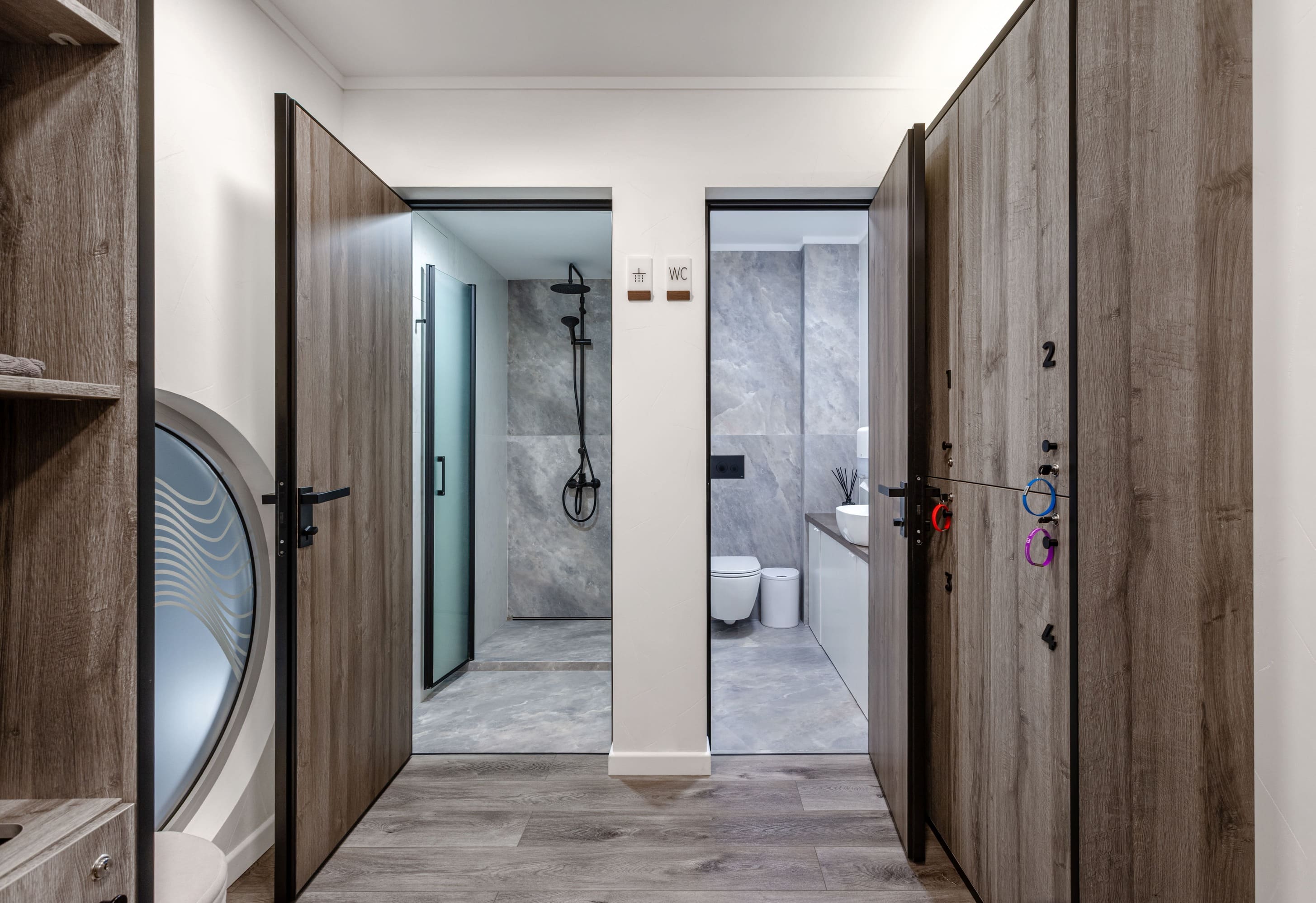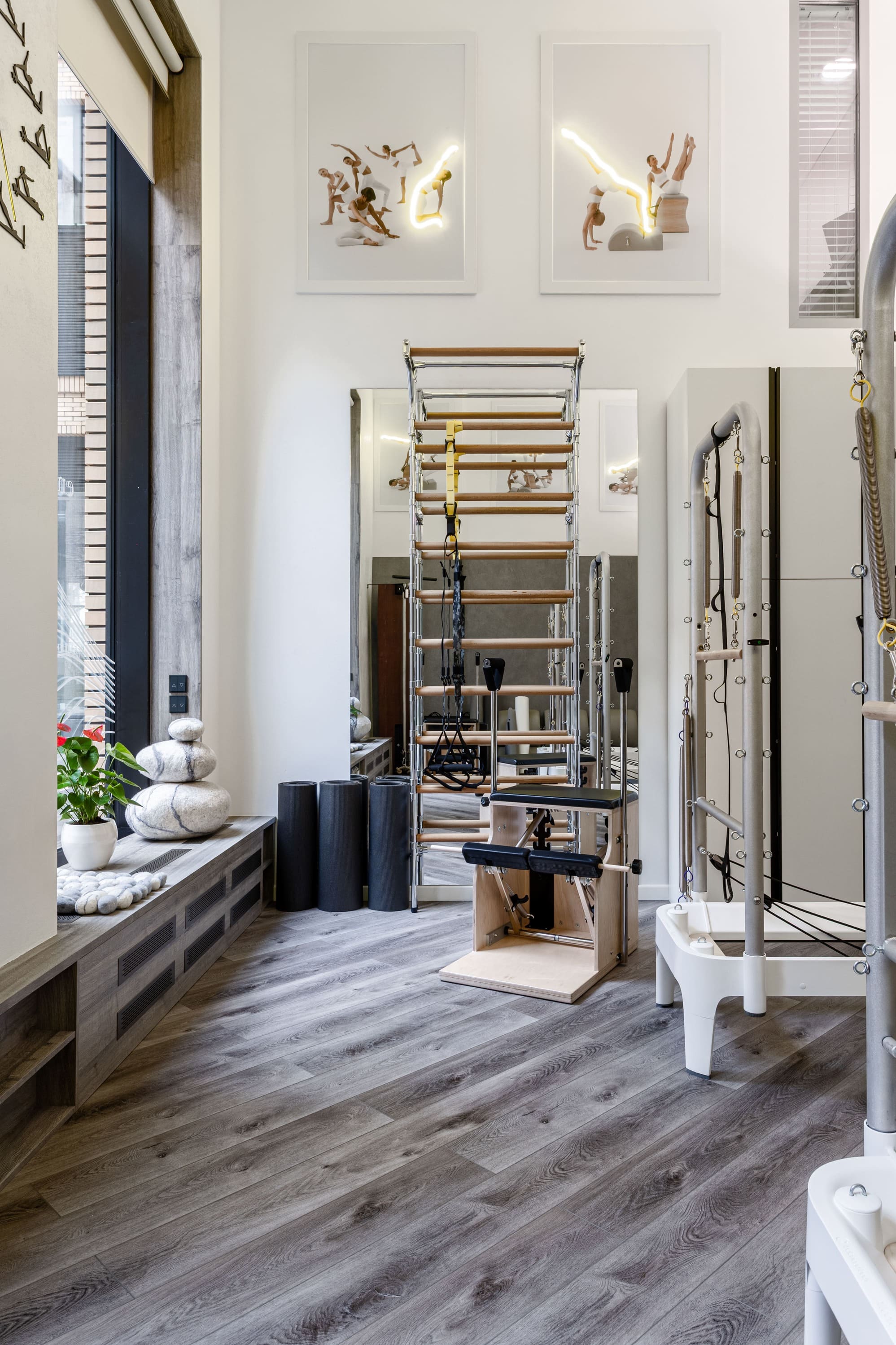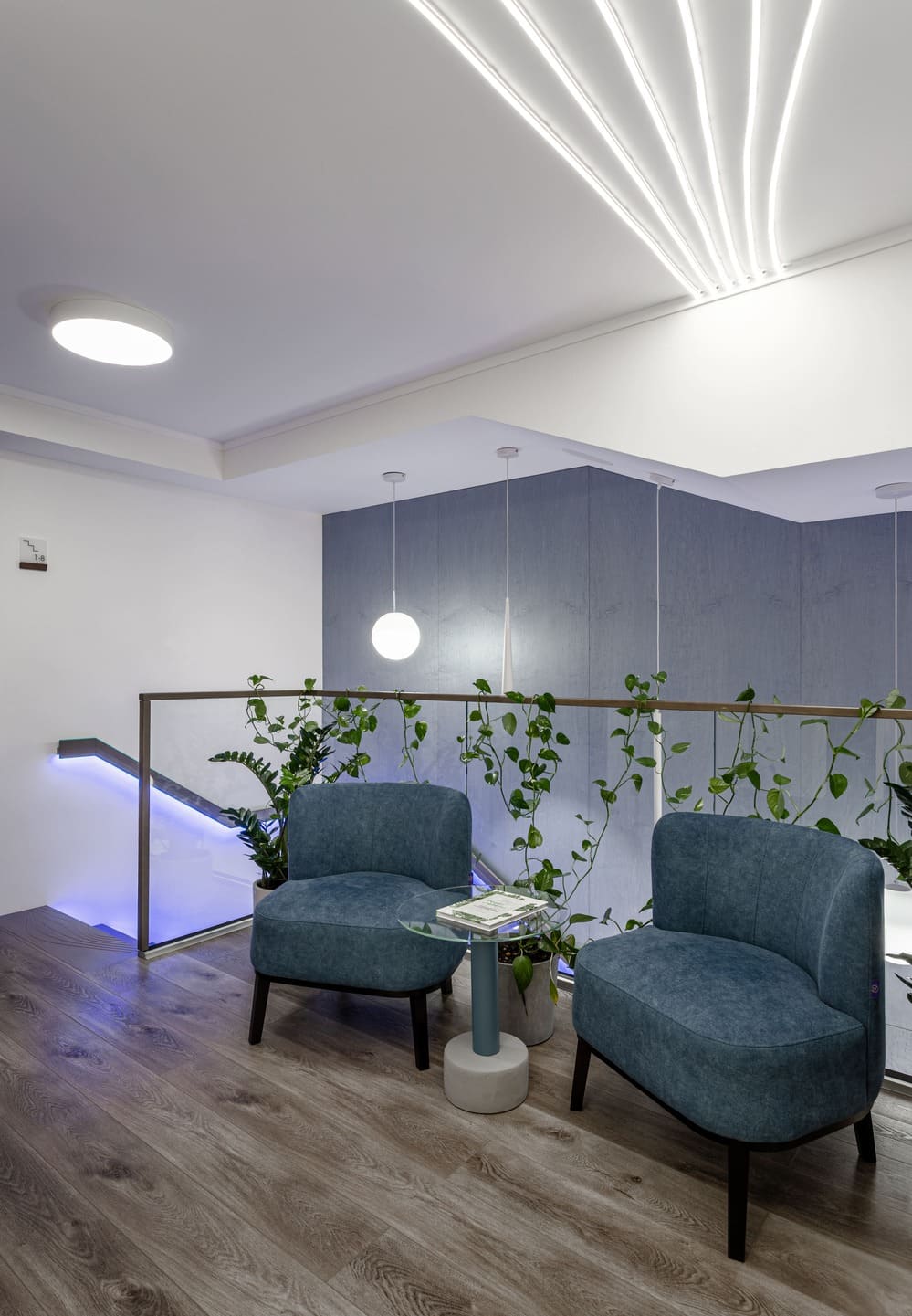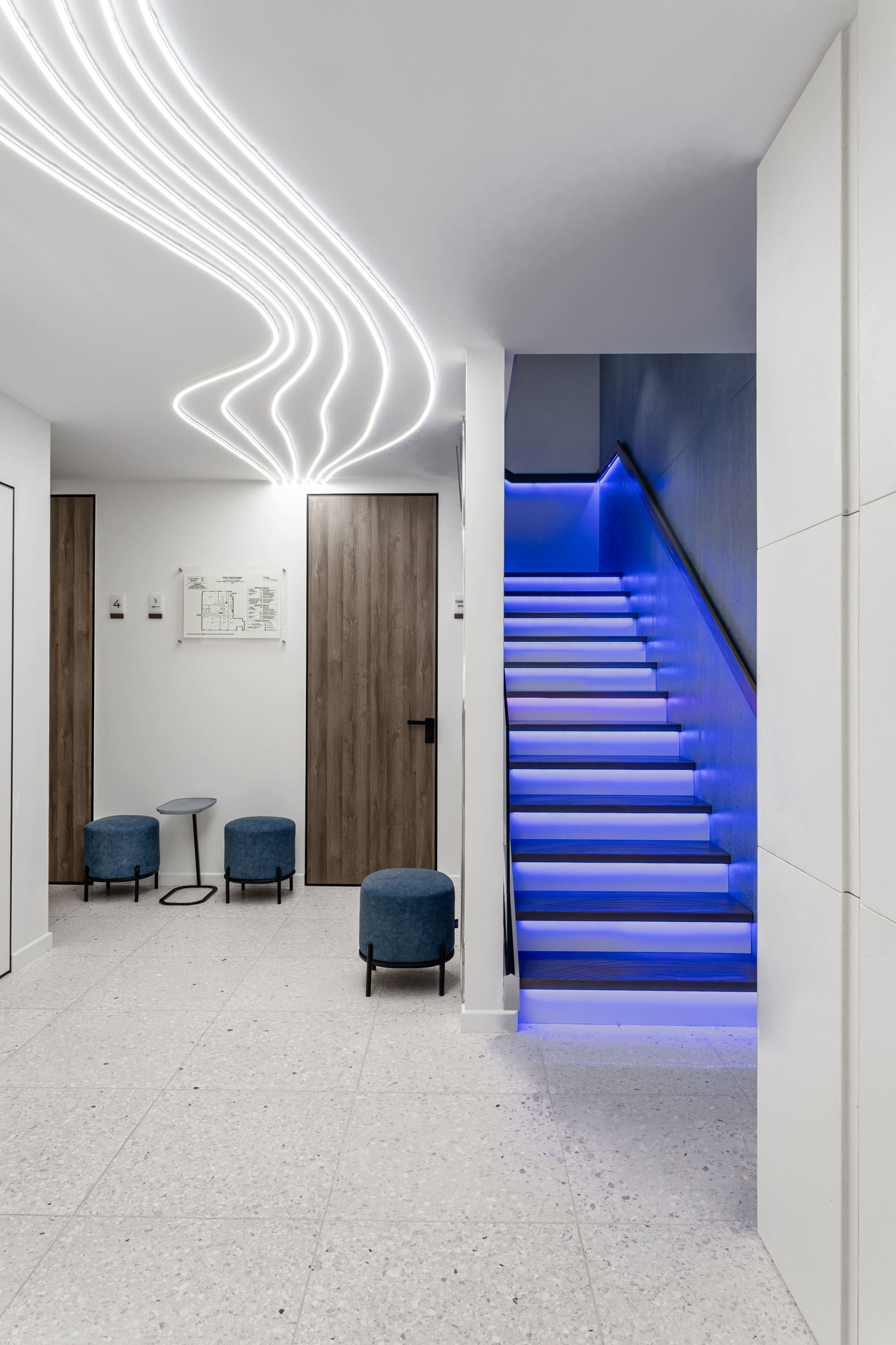 Все световые сценарии рассчитаны под разные форматы занятий и позволяют регулировать яркость и атмосферу пространства. Освещение равномерное, комфортное для глаз и подчёркивает геометрию интерьера, не отвлекая от тренировочного процесса. Проект «Эндорфин» - пример сдержанного, технически выверенного интерьера, где дизайн полностью отвечает задаче удобной и профессиональной работы студии.