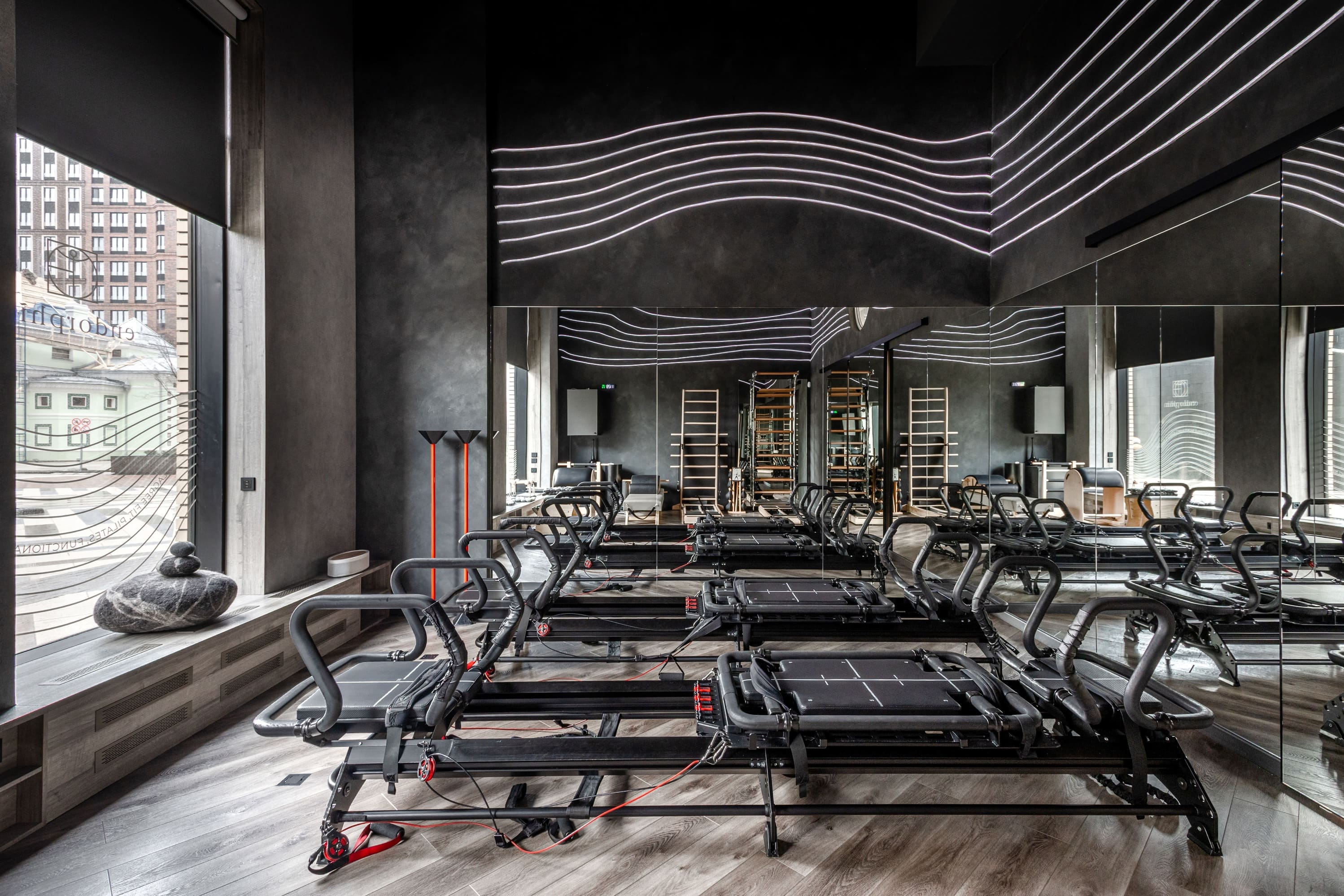Интерьер адаптирован под профессиональные тренировки и построен с учётом используемого оборудования и сценариев работы студии.